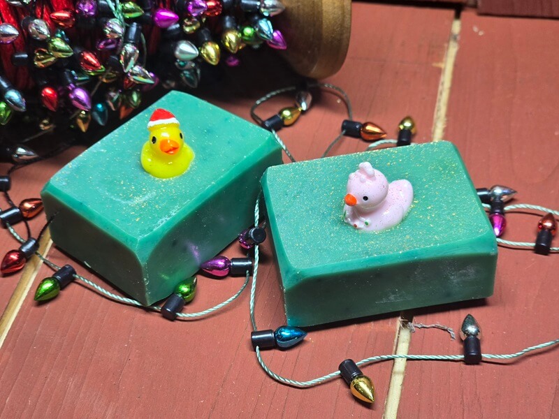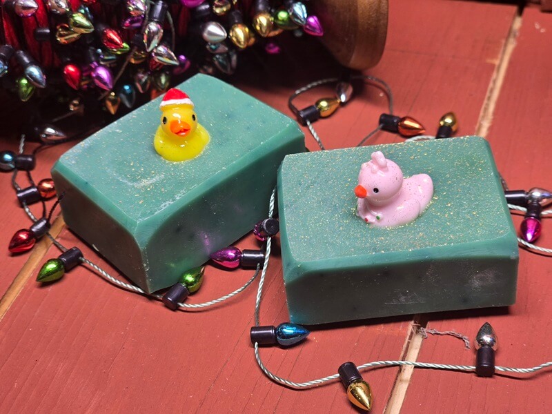 Jede Seife wird von Hand gefertigt und mit einem kleinen Weihnachtsentchen aus Kunststoff verziert. Es gibt zwei verschiedene Entchenmotive, die wahlweise nach Zufall oder nach Wunsch (bitte im Kommentarfeld angeben) verschickt werden.